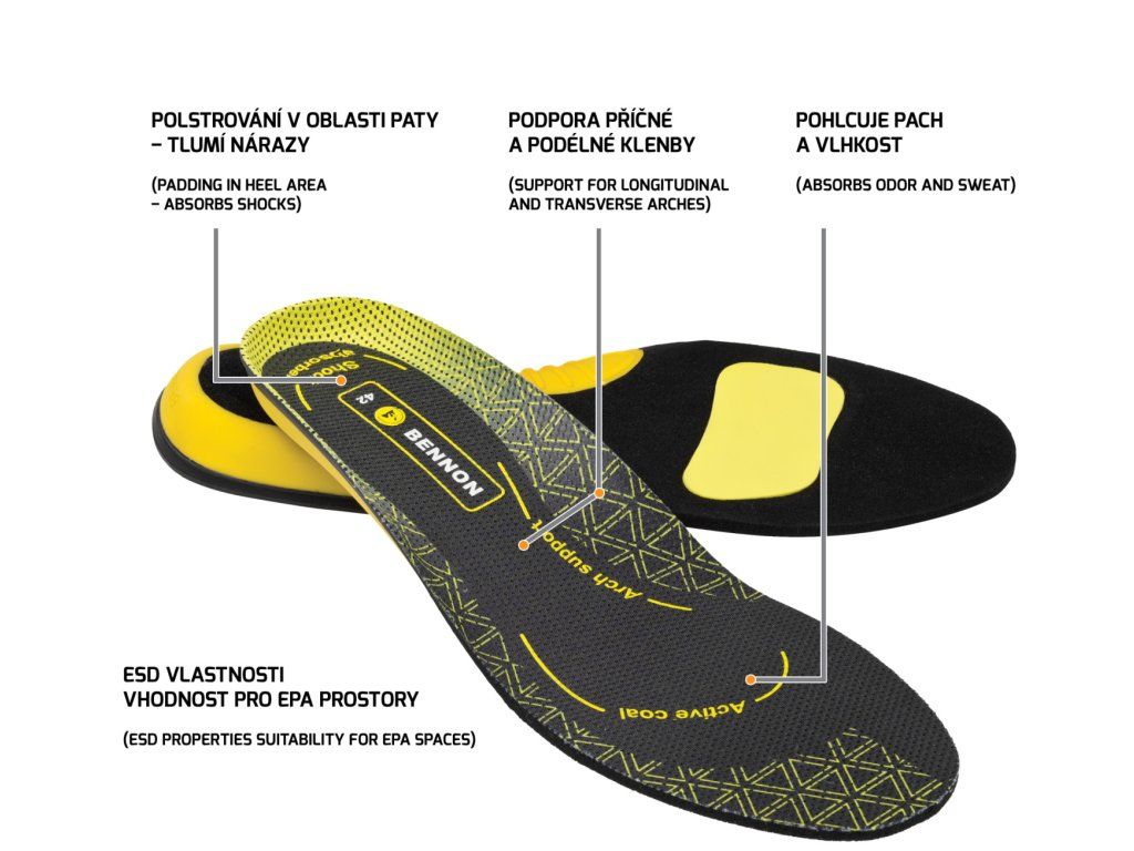 Anatomicky tvarovaná stélka, která je vyvinuta pro podporu podélné a příčné klenby. V oblasti paty je vytvořeno měkké polstrování, které tlumí nárazy na patní kost. Stélka je vyrobena s vyšším podílem aktivního uhlí, které pohlcuje pach a saje pot. Díky těmto vlastnostem se zvyšuje komfort nošení obuvi. Stélka je vhodná pro aktivní pracovní prostředí.