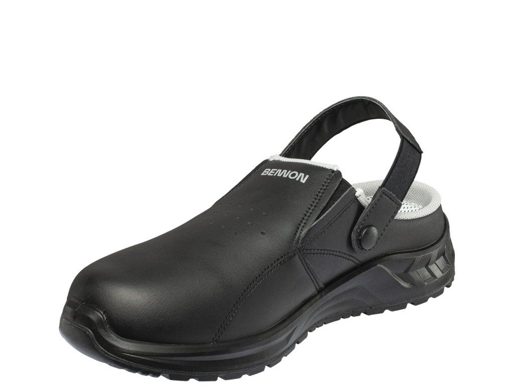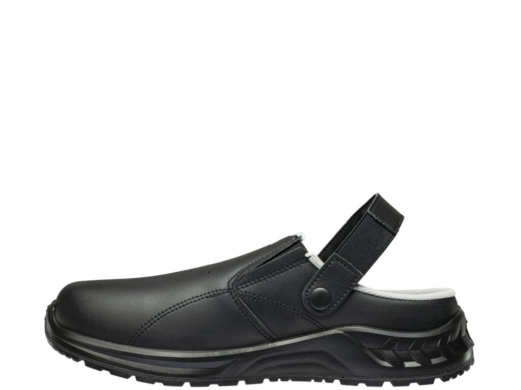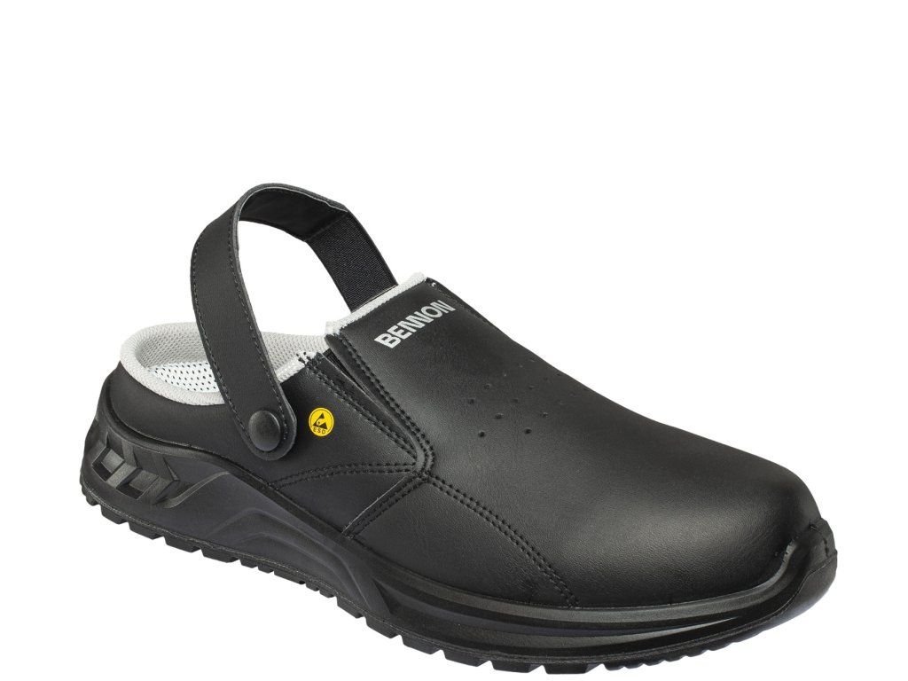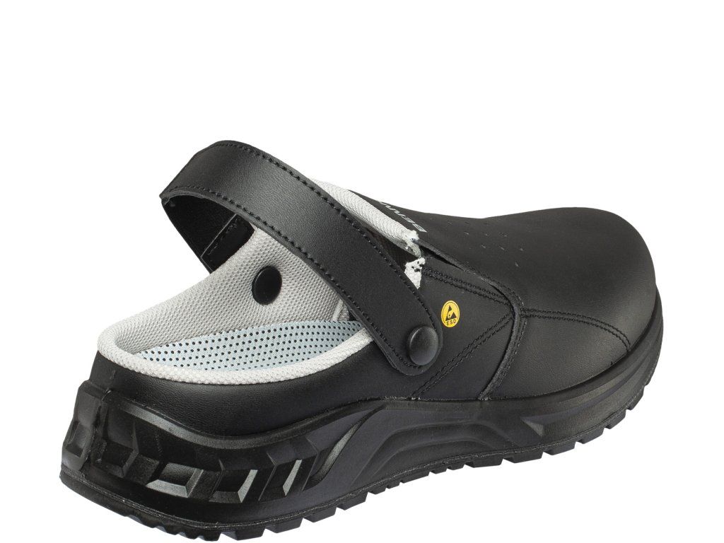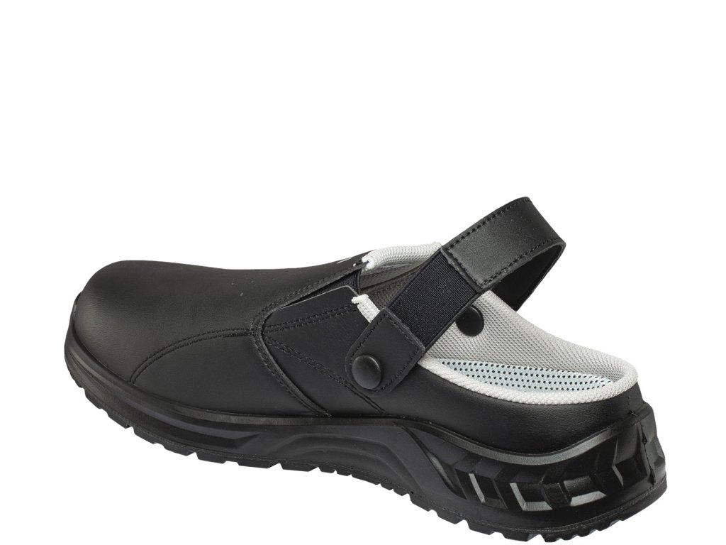 Nemetalický, antistatický, velmi odolný, dobře omyvatelný pracovní nazouvák s ESD vlastnostmi vhodný do pohostinství, gastronomie, EPA prostorů atd.   Součástí toho nazouváku je patní pásek, jímž si můžete botu lépe zafixovat k chodidlu, avšak pokud není třeba, můžete jej odepnout. Přední část této obuvi je perforovaná, což spolu s antibakteriální stélkou zajistí, že se vaše chodidla v tomto nazouváku budou cítit déle svěží. Co se bezpečnosti týče, velkou výhodou je zde protiskluzová SRC vlastnost podešve a odpružení v oblasti paty, které tlumí nárazy a šetří tak klouby i svalstvo chodidel.