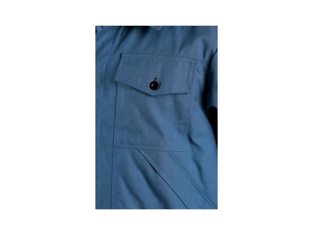 Pánská kyselinovzdorná blůza s krytým zapínáním na knoflíky, rukávy s pružnou manžetou, pas na bocích do gumy. Doporučené použití: chemici, pivovary, strojírenství, tužkařské výroby, laboratoře, galvanizovny, sklady, čističky, chemický průmysl.
