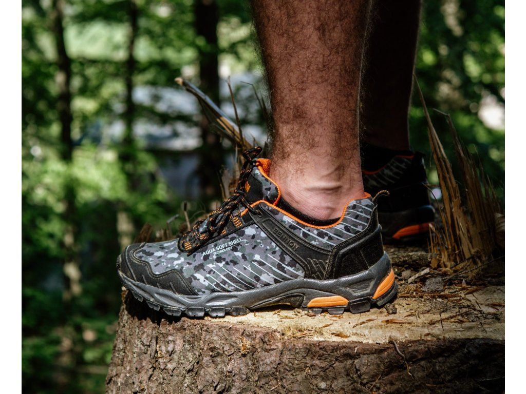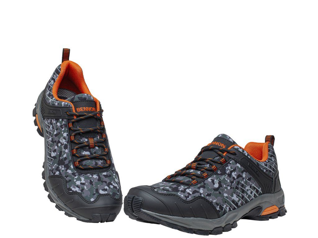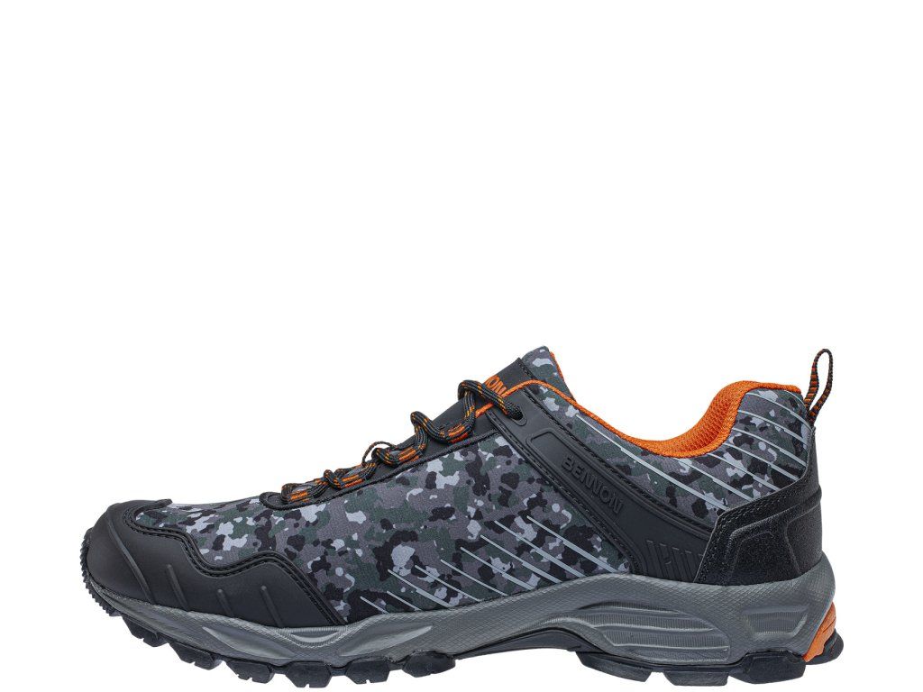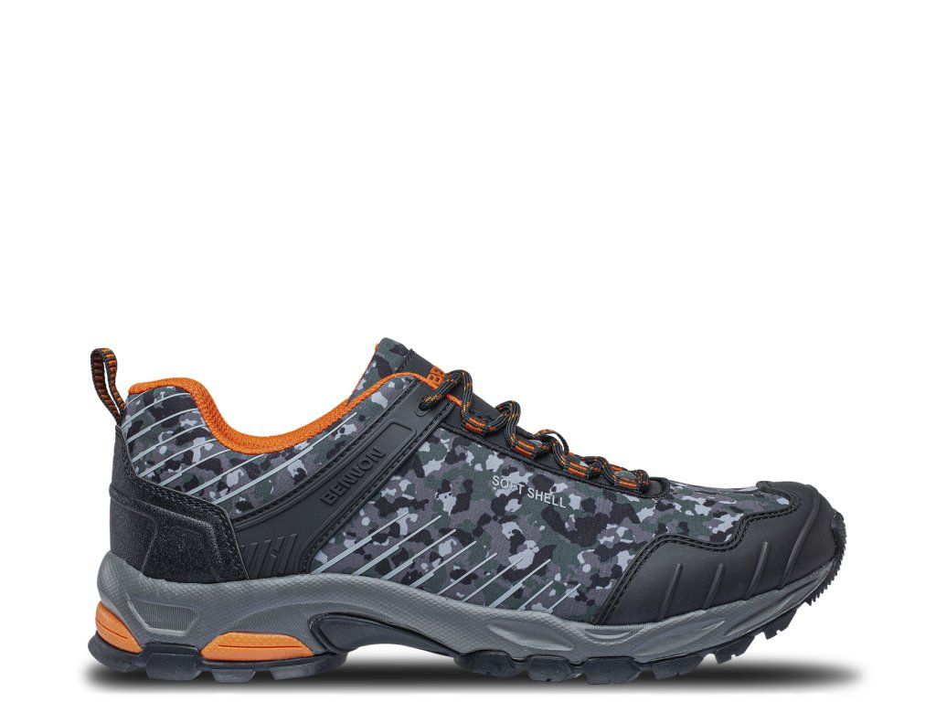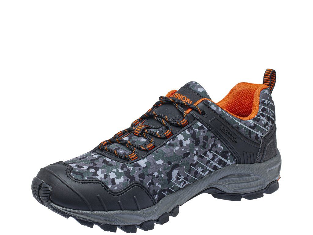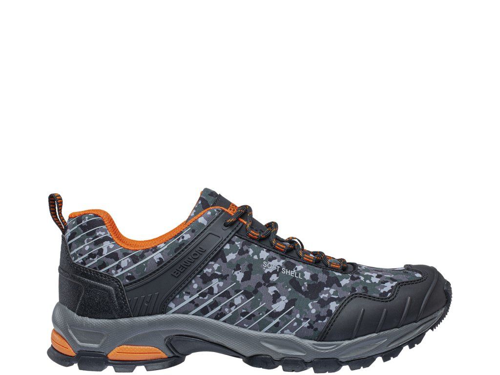Lehká outdoorová polobotka s maskáčovým (camouflage) vzorem.   Tyto boty  jsou vybaveny protiokopovou pryžovou špicí chránící botu před mechanickým poškozením.   Zpevňující PU komponent v oblasti paty zajišťuje lepší stabilitu chodidla při chůzi v náročnějším terénu a zároveň má i ochrannou funkci, tzn. zvyšuje odolnost boty vůči prodření.   Uvnitř této obuvi naleznete velmi pohodlnou vložku do bot ABSORBA XTR Insole, která má tvarovanou patní misku tlumící nárazy na patní kost. Výhodou této stélky je, že obsahuje aktivní uhlí, jež má antibakteriální účinek a vaše chodidla zůstanou déle svěží.   Díky výše uvedeným vlastnostem je obuv vhodná pro outdoorové aktivity, sport a turistiku.