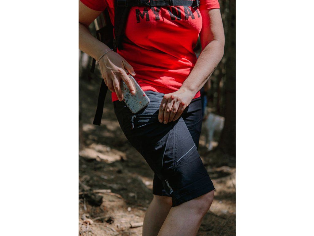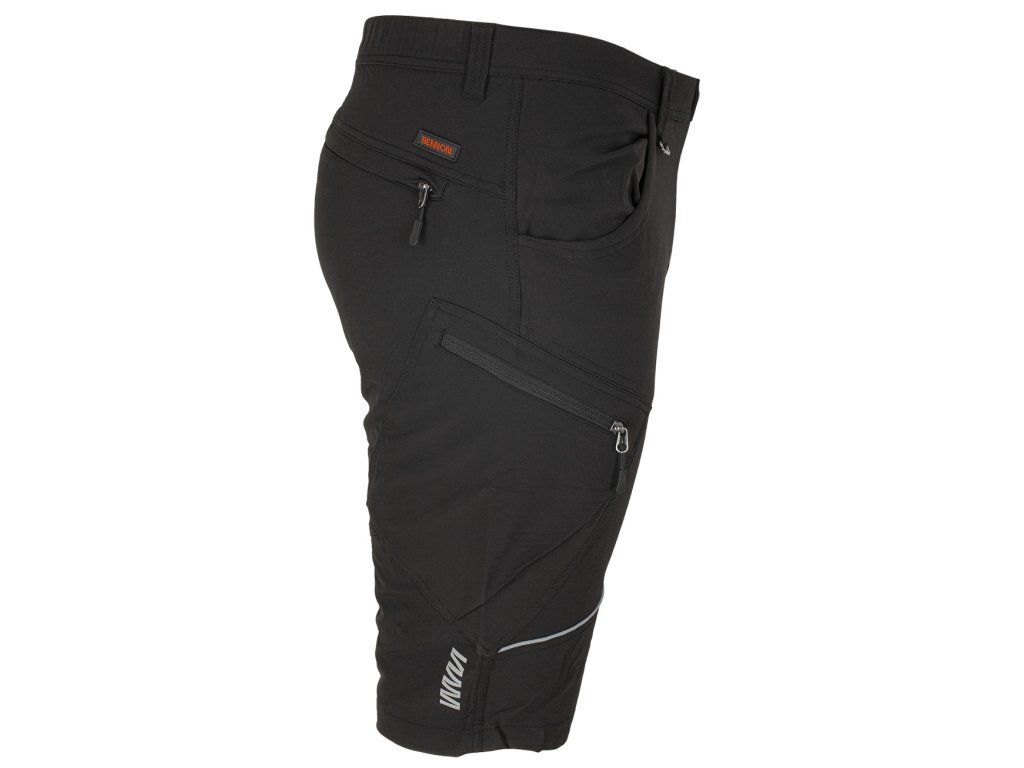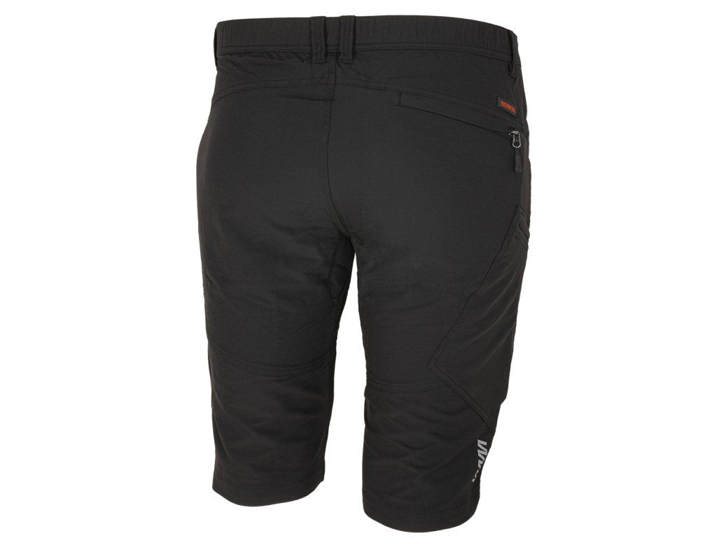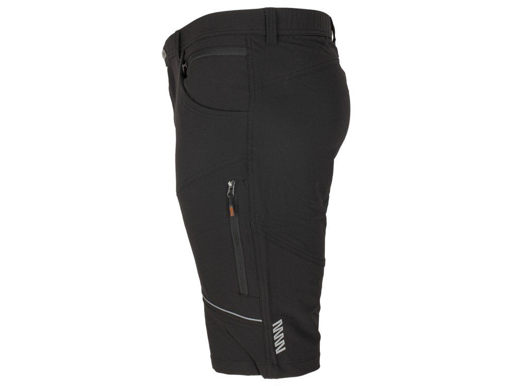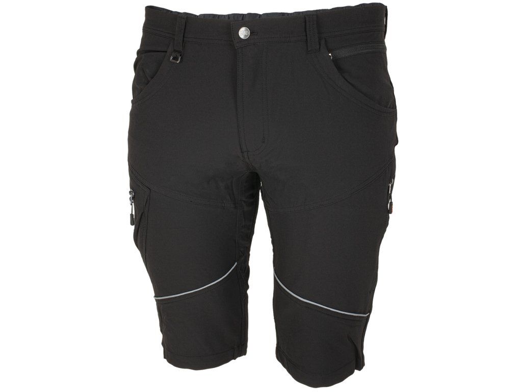 Outdoorové strečové kraťasy pevný strečový materiál kvalitní trojité prošití na namáhaných místech reflexní prvky na nohavicích pro lepší viditelnost 2 kapsy na předním díle nohavic kapsy na zip na předním a zadním díle elastický pas Barva: černá