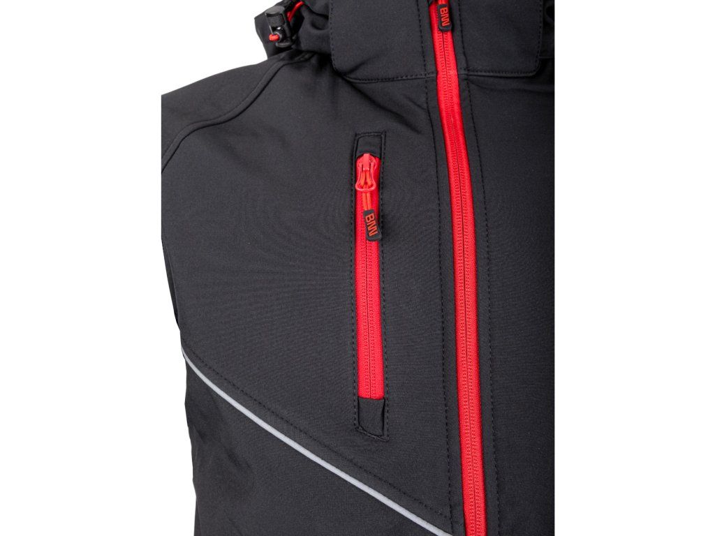Softshellová bunda pro volnočasové užití i pro práci. S hřejivým vnitřním ripstop fleecem, vhodné do chladnějšího počasí. Pružný a prodyšný materiál, který je větru i vodě odolný Vodní sloupec 5000 mm 3 vnější kapsy na zip + 3 vnitřní Odnímatelná kapuce, kterou lze nastavit pomocí suchého zipu Štítek na jmenovku Reflexní prvky na zádech a na hrudi Ventilace na zádech pomocí zipu Možnost nastavení šířky boků pomocí šňůrek Doporučujeme kombinovat s kalhoty FORCE Trousers black/red.