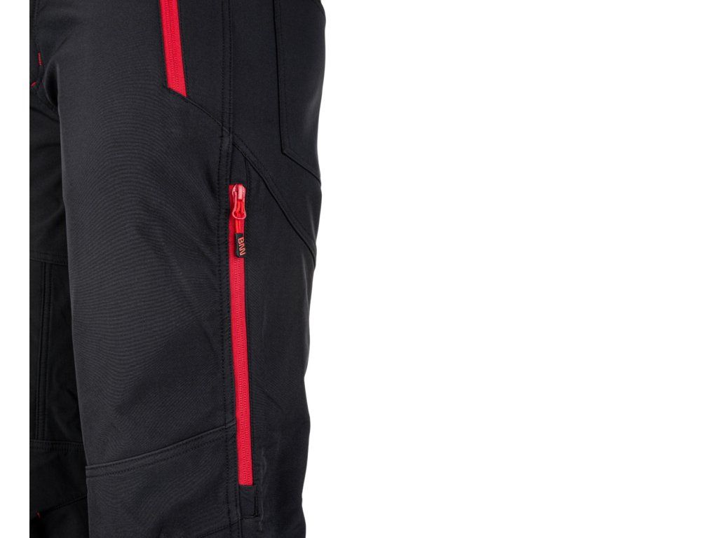 Softshellové kalhoty pro volnočasové užití i pro práci. S hřejivým vnitřním ripstop fleecem, vhodné do chladnějšího počasí. Pružný a prodyšný materiál, který je větru i vodě odolný Průduchy po bocích pomocí zipu Reflexní prvky na nohavicích pro lepší viditelnost Vodní sloupec 5000 mm 2 přední kapsy na zip, 2 zadní kapsy, 1 kapsa na stehně na zip Štítek na jmenovku Velmi kvalitní a odolné zipy YKK Doporučujeme kombinovat s bundou FORCE Jacket black/red.