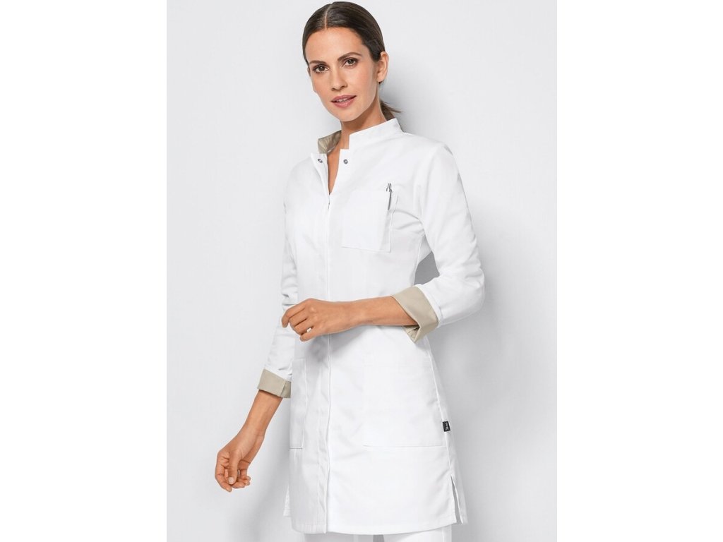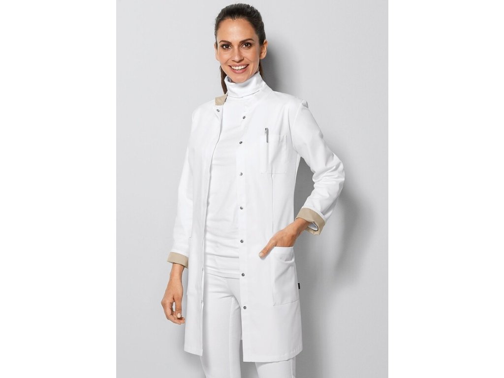 Dámsky laboratórny plášť zaujme na prvý pohľad kvalitou spracovania. Ponúka výnimočný štýl, ktorý povýši váš zdravotnícky outfit. Malý stojačik a dlhé rukávy s kontrastnou farbou vo vnútri umožňuje tomuto plášťu vytvoriť ďalší variant, ako ho môžete nosiť. Stačí si rukávy vyhrnúť a vytvoríte si ešte pohodlnejší lekársky plášť, ktorý môžete dotónovať s ďalšou modernou farbou.