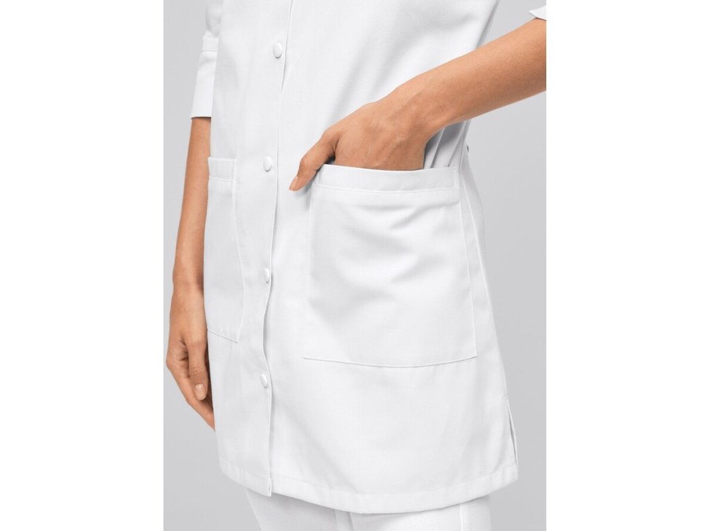 Vaša pracovná uniforma na úrovni! Dámsky štýlový biely plášť značky 7days. Praktický strih, príjemný materiál, zároveň odolný na pranie aj žehlenie na najvyššom stupni. Tento plášť môže byť v šatníku každého zdravotníka. Farba aj strih slušia všetkým ženám. Jednoducho zladíte s akýmkoľvek pracovným otfitom.