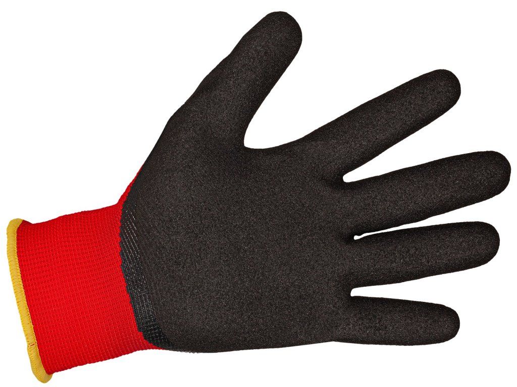 Materiál: 100 % PES úplet 13 g, dvouvrstvý nitril – písková úprava, pružná manžeta v zápěstí.Norma: rukavice splňuje základní požadavky na osobní ochranné prostředky dle NAŘÍZENÍ EVROPSKÉHO PARLAMENTU A RADY (EU) 2016/425 ze dne 9. března 2016 o osobních ochranných prostředcích; Jsou vyrobeny v souladu s normou EN 420:2003+A1:2009 a EN 388:2016. Rukavice jsou určeny pro ochranu při mechanickým rizikům; stupeň ochrany 3121X (oděr, prořez, pevnost v trhu a propich).