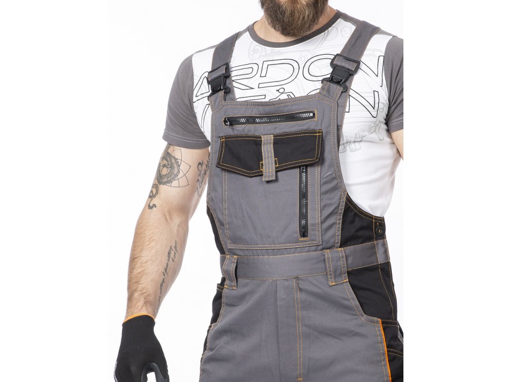 Nohavice s náprsenkou ARDON®VISION 03 sivo-oranžové 46