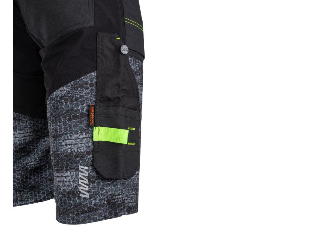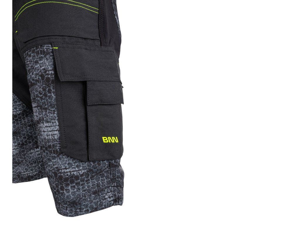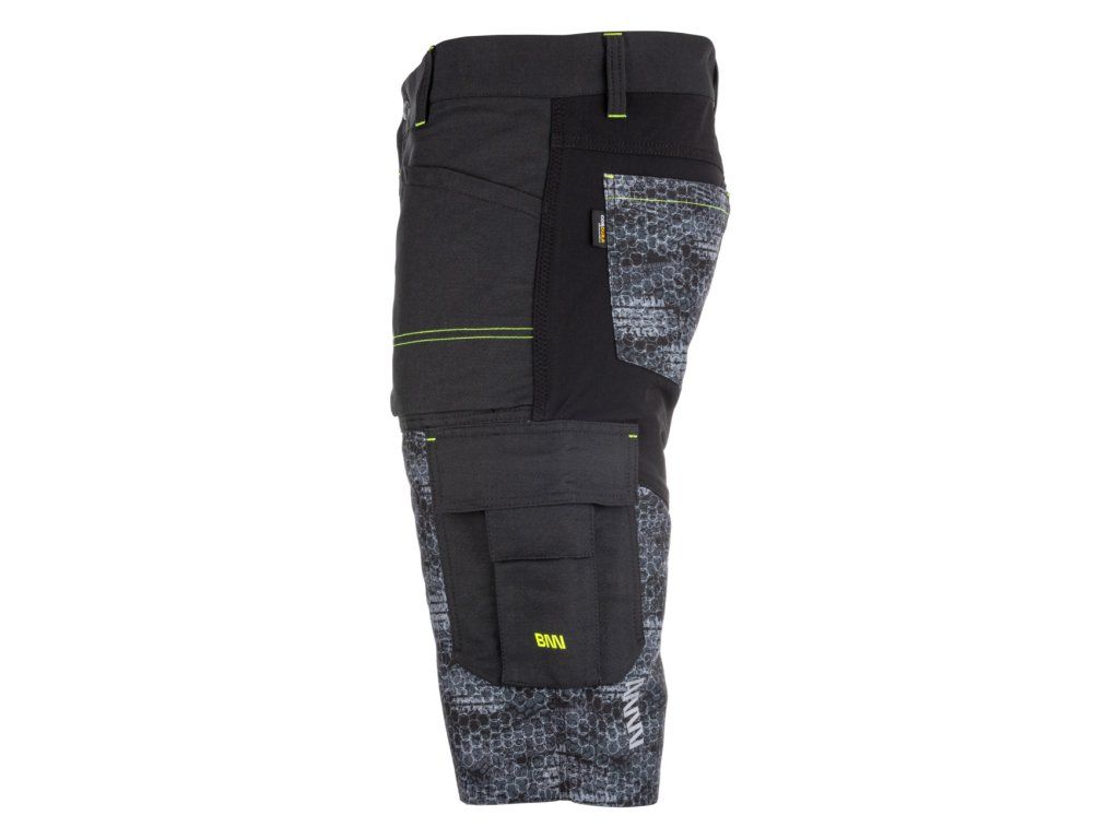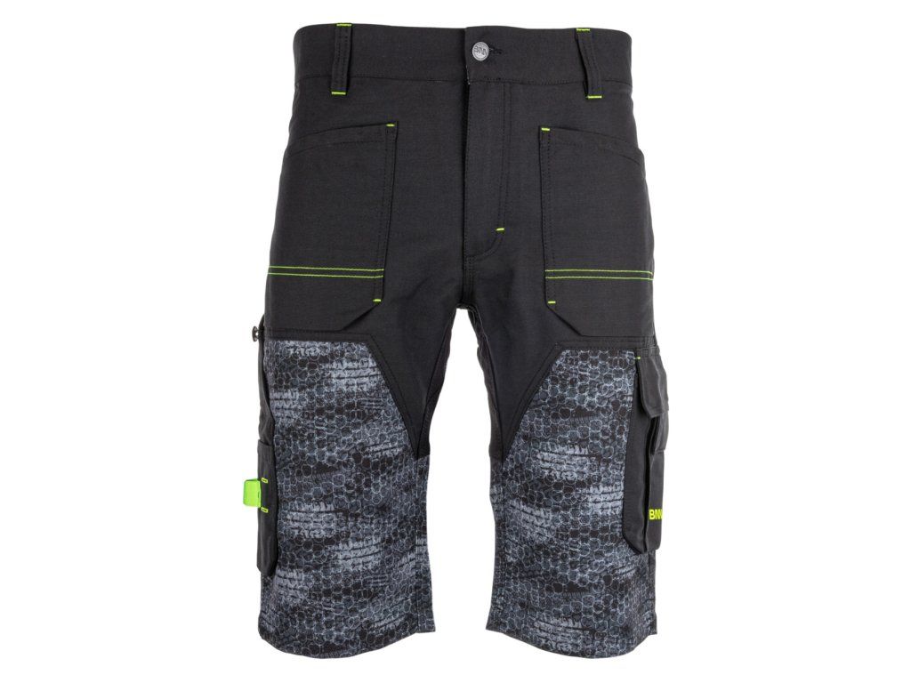 Pohodlné pánské strečové pracovní kraťasy s jemným maskáčovým vzorem   • velmi pevný odolný materiál, v oblasti sedu a rozkroku velmi pružný zajišťující volnost při pohybových aktivitách • materiálové zpevnění dobby materiálem pro větší odolnost vůči oděrům • boky kraťasů zpevněné materiálem Cordura 500D pro větší výdrž • vodoodpudivý zátěr • odepínací kapsy na nářadí • kapsy na šroubováky, hřebíky a kladiva • kapsa na skládací metr • kapsa na mobilní telefon • poutka na zavěšení nářadí • textilní štítek na jmenovku • reflexní prvky na nohavicích pro vaši bezpečnost za tmy a šera   Doporučené použití: práce ve vnitřních i venkovních prostorech.