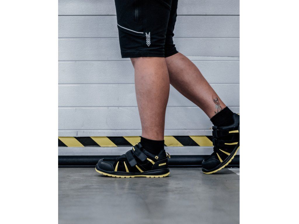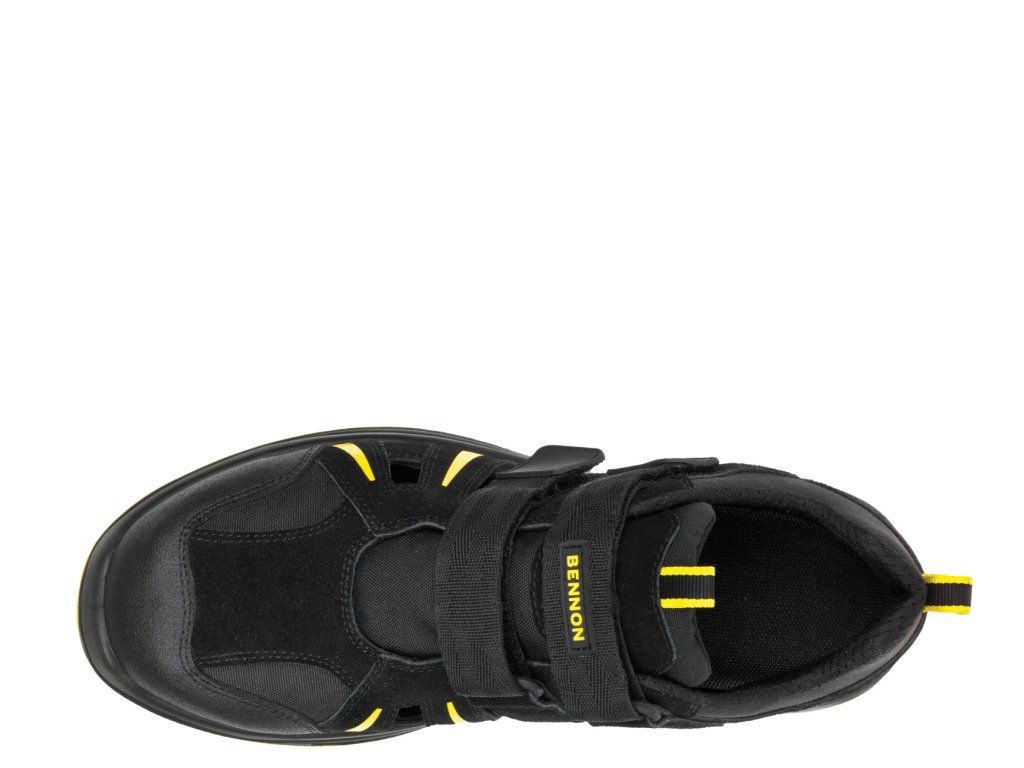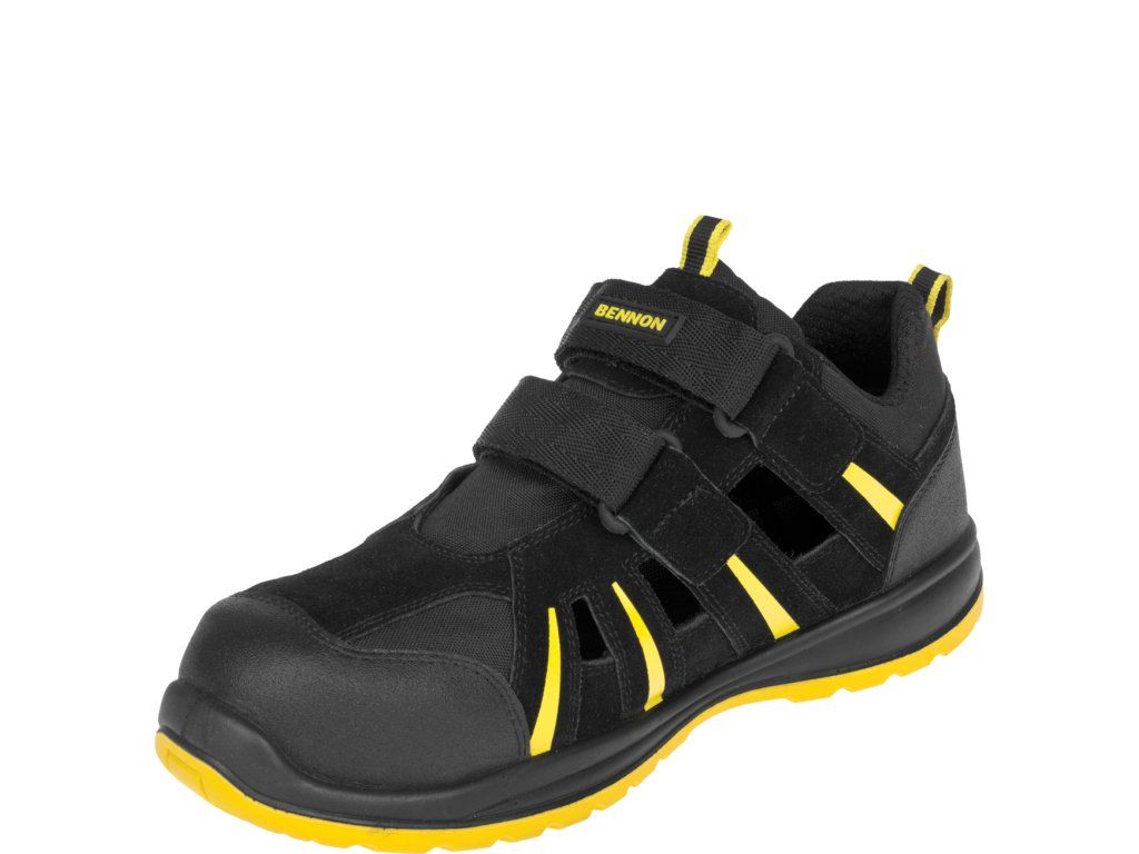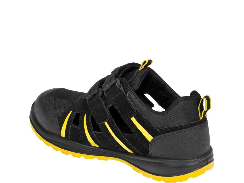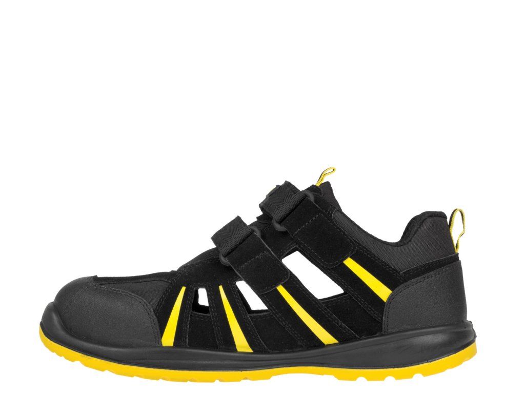 Bezpečnostní nonmetalický sandál je vyroben z kombinace štípené usně a textilie MESH.
