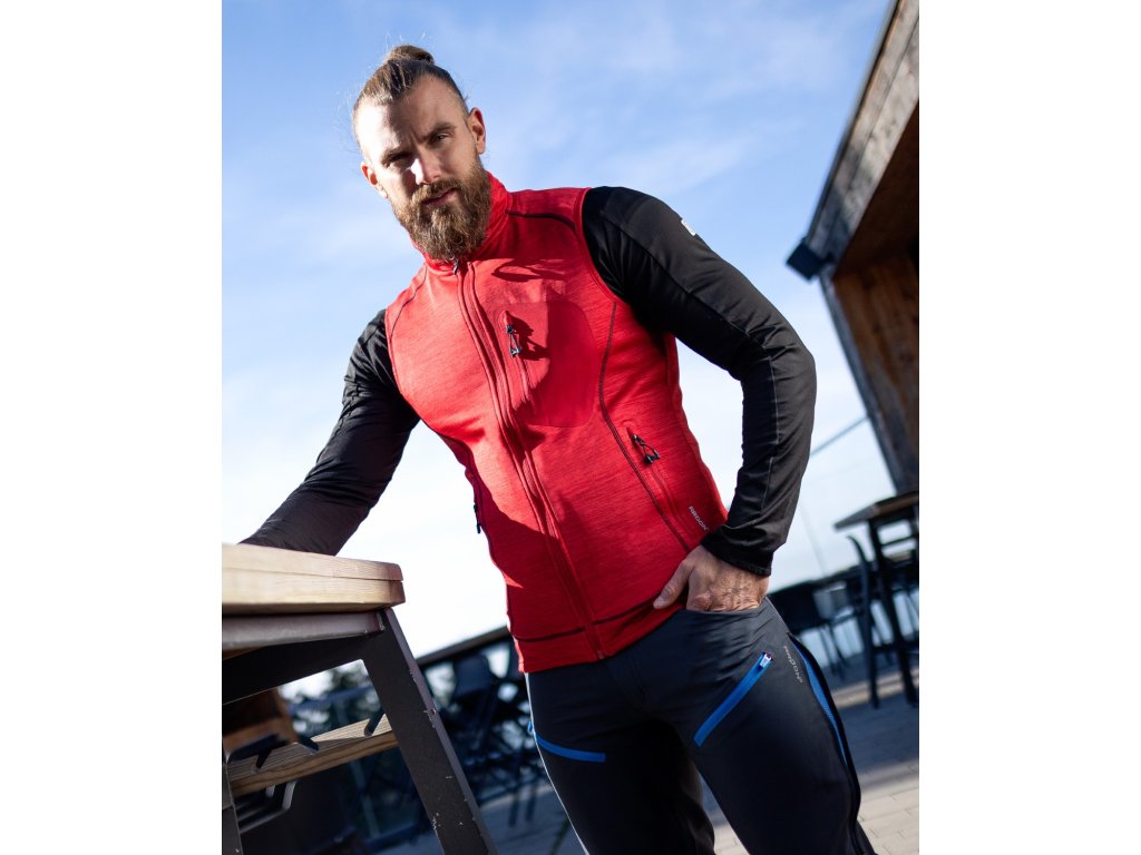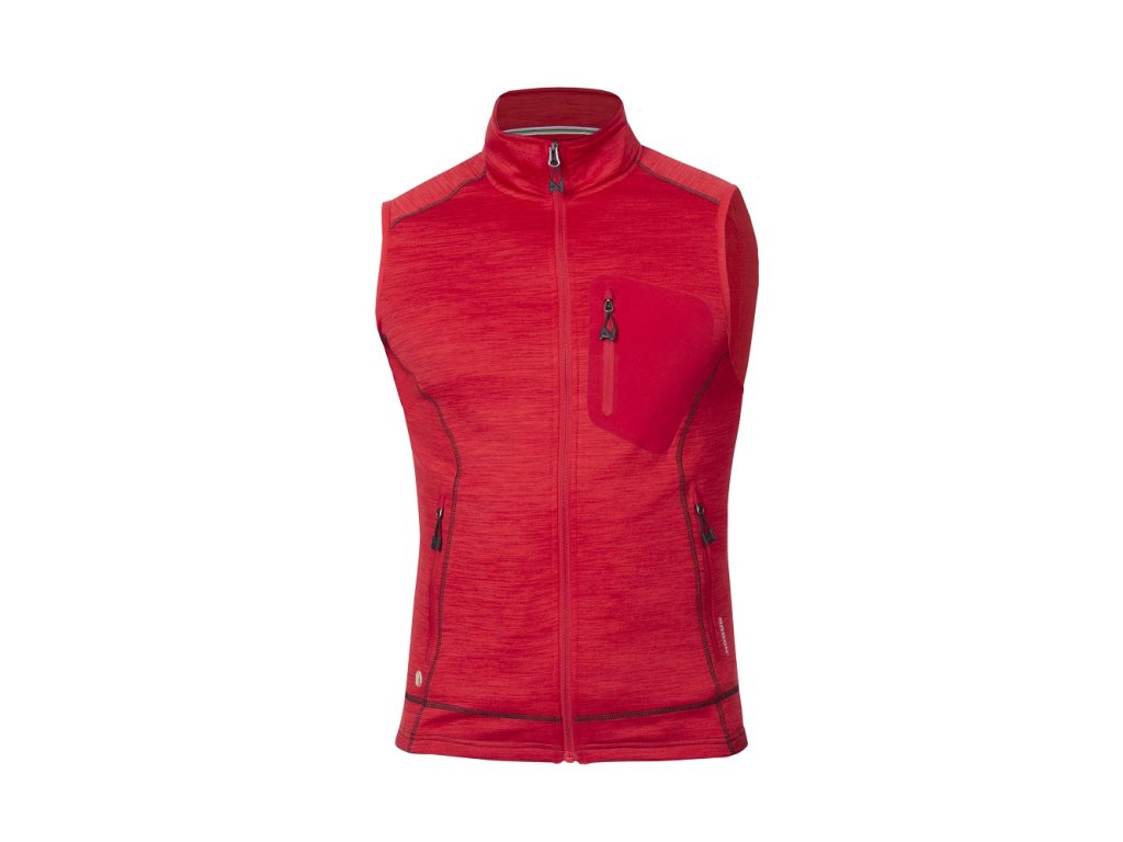 - funkčná vesta vo vzhľade melange ponúka vynikajúci komfort pohybu vďaka skvelej siluete a ergonomicky tvarovanému strihu s predĺženým zadným dielom
