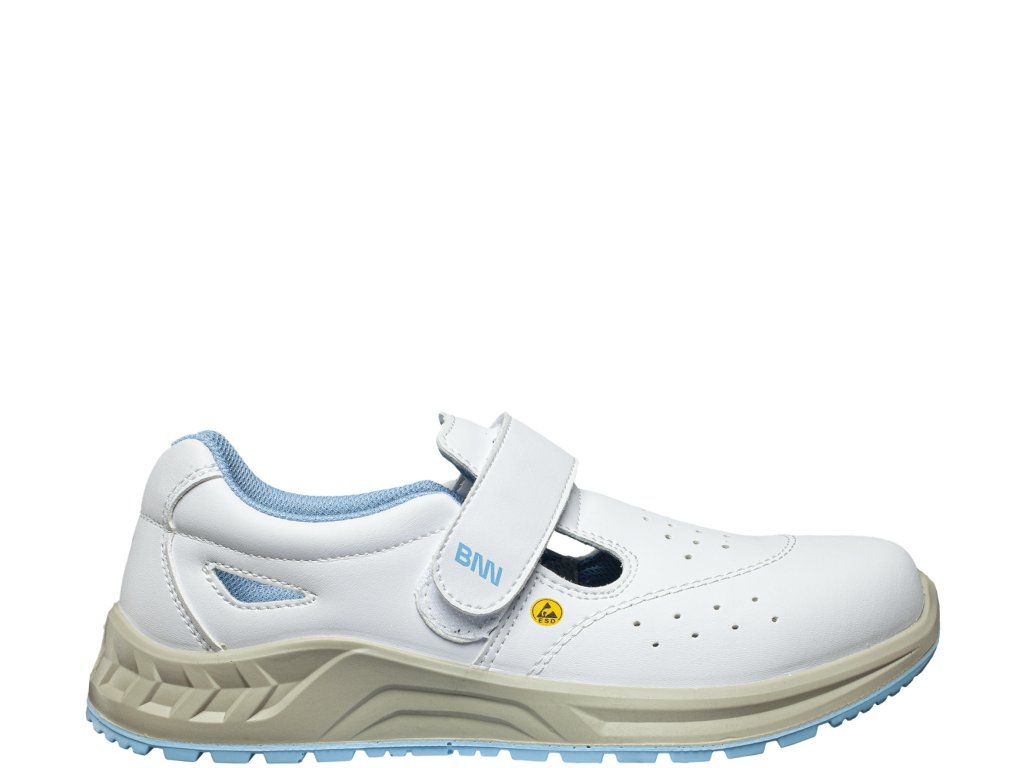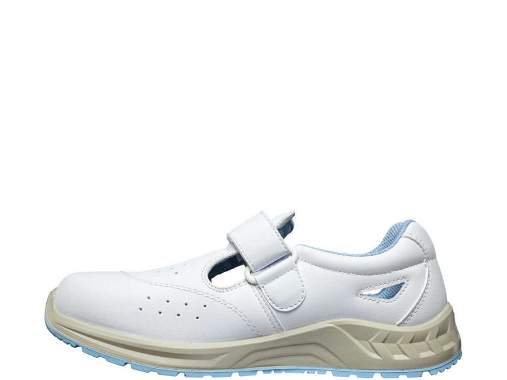 Bílá, dobře omyvatelná, antistatická obuv s ESD vlastnostmi.   Pro větší pohodlí při dlouhodobém nošení má tato obuv: odpruženou patu, stélku s podílem aktivního uhlí (pohlcuje pot a eliminuje zápach) perforovaný svršek zajišťují lepší prodyšnost   Pro větší bezpečnost, tj. stabilitu při práci je obuv vybavena podešví s protiskluznou SRC vlastností. Rychlé a snadné uzavírání obuvi zajišťuje suchý zip.   Obuv je vhodná do suchého venkovního a vnitřního prostředí   Doporučené použití: zdravotnictví, lékárny, pohostinství, potravinářský průmysl, jídelny, EPA provozy, atd.