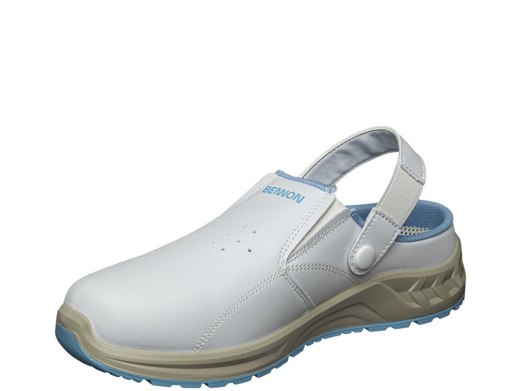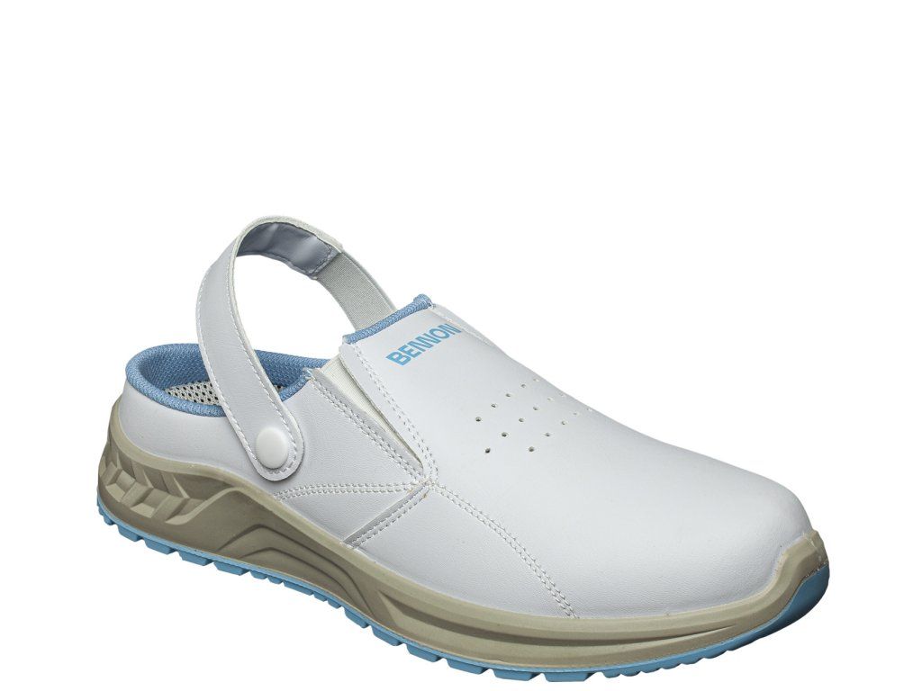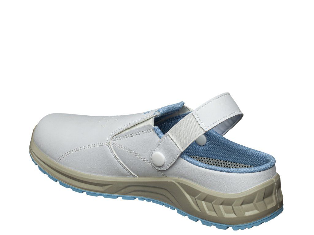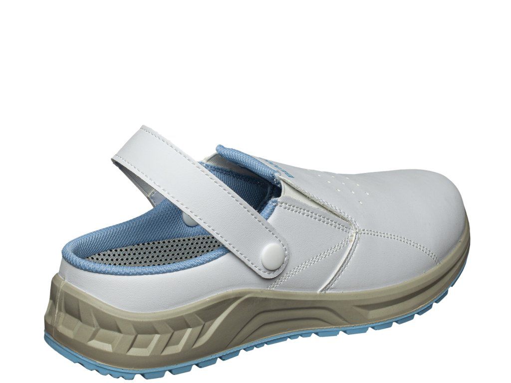 Bílá, dobře omyvatelná, antistatická obuv.   Pro větší pohodlí při dlouhodobém nošení má tato obuv: odpruženou patu stélku s podílem aktivního uhlí (pohlcuje pot)   Bezpečnost při práci zajišťuje protiskluzná SRC vlastnost podešve (zajišťuje stabilitu). Obuv je vhodná do suchého venkovního a vnitřního prostředí.   Doporučené použití: zdravotnictví, lékárny, pohostinství, potravinářský průmysl, jídelny, atd.