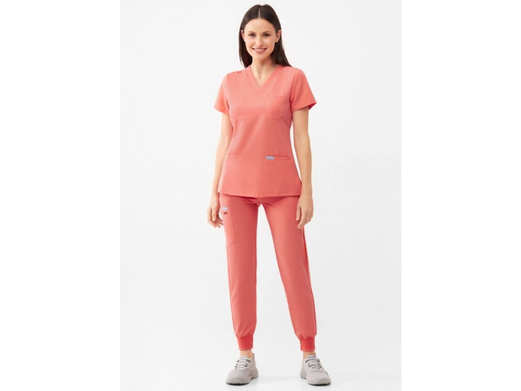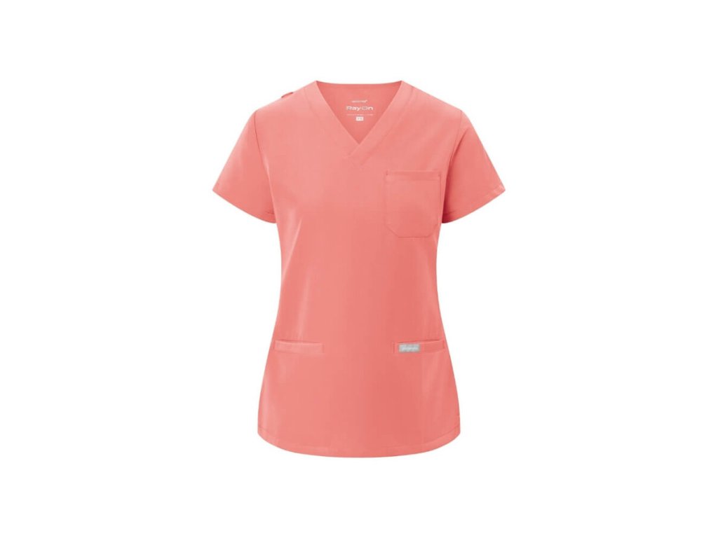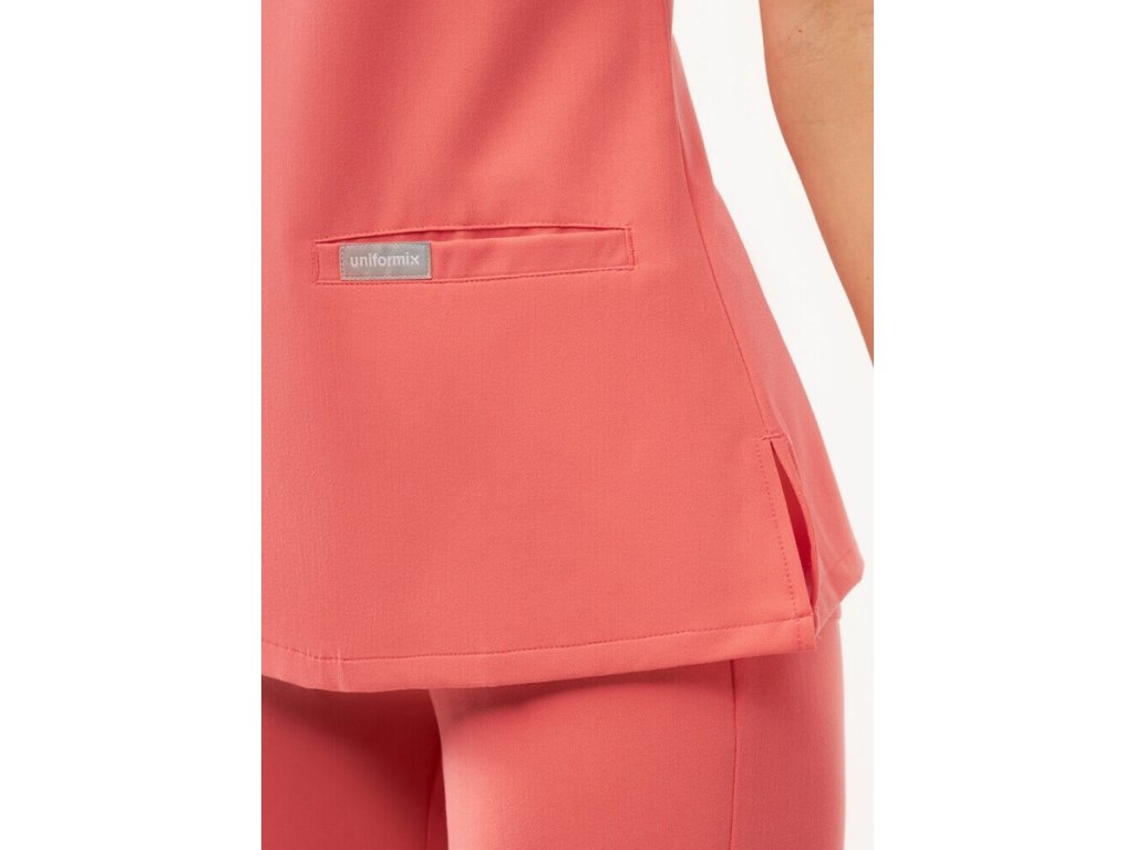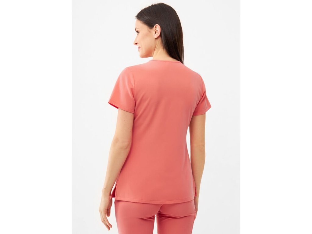 Klasický strih s výstrihom do V a krátkymi rukávmi v modernom štýle. Elegantný vzhľad umocňuje mierne vypasovaný strih, ktorý opticky vylepší postavu zdravotníčky. Na prednej strane zdravotníckej blúzky sú dve vrecká na bokoch a jedno náprsné, ktoré poskytujú dostatok miesta na uloženie potrebných doplnkov, ako sú perá, poznámkové bloky alebo kľúče. Vďaka nim máte všetko, čo potrebujete na prácu, vždy po ruke. Navyše je na pravom ramene našité pútko na visačku. Rozparky na bokoch sa postarajú a voľnejší pohyb. Lekárska blúza je dostupná v krásnych moderných farbách, je štýlová a navyše v nej budete vyzerať elegantne a zároveň profesionálne.