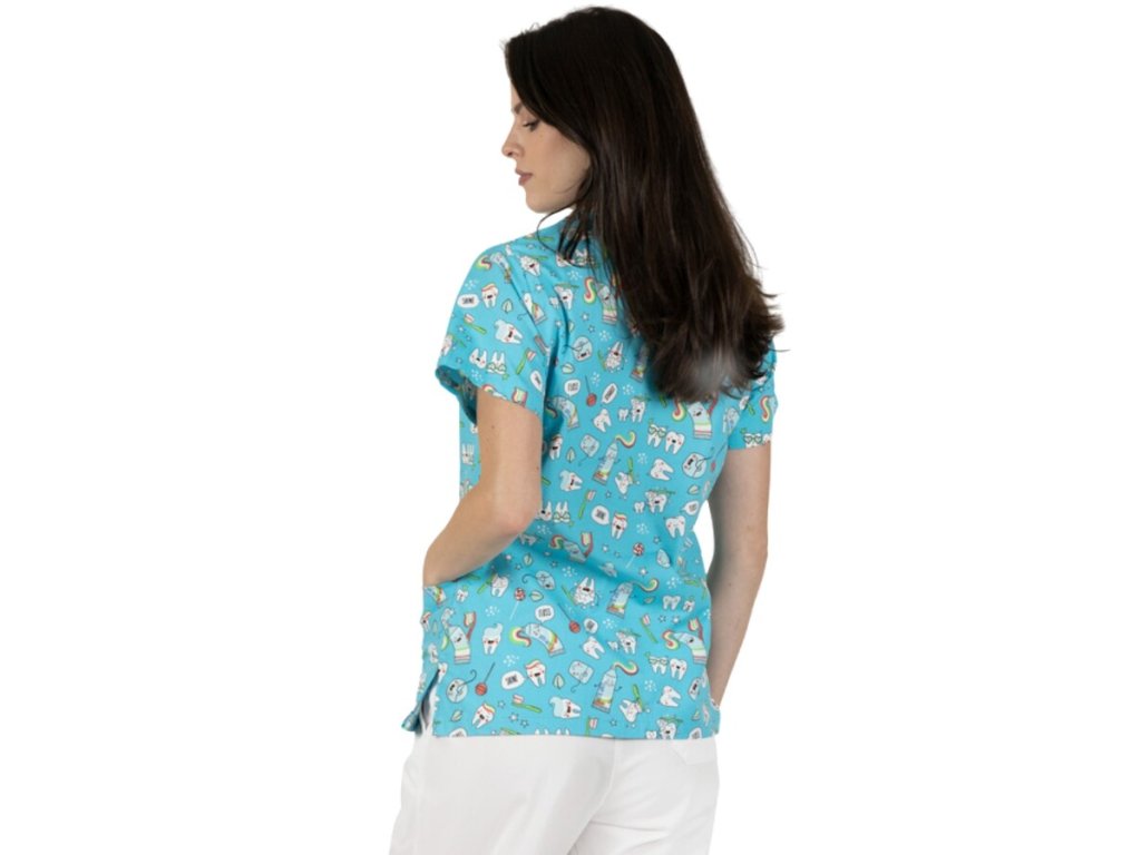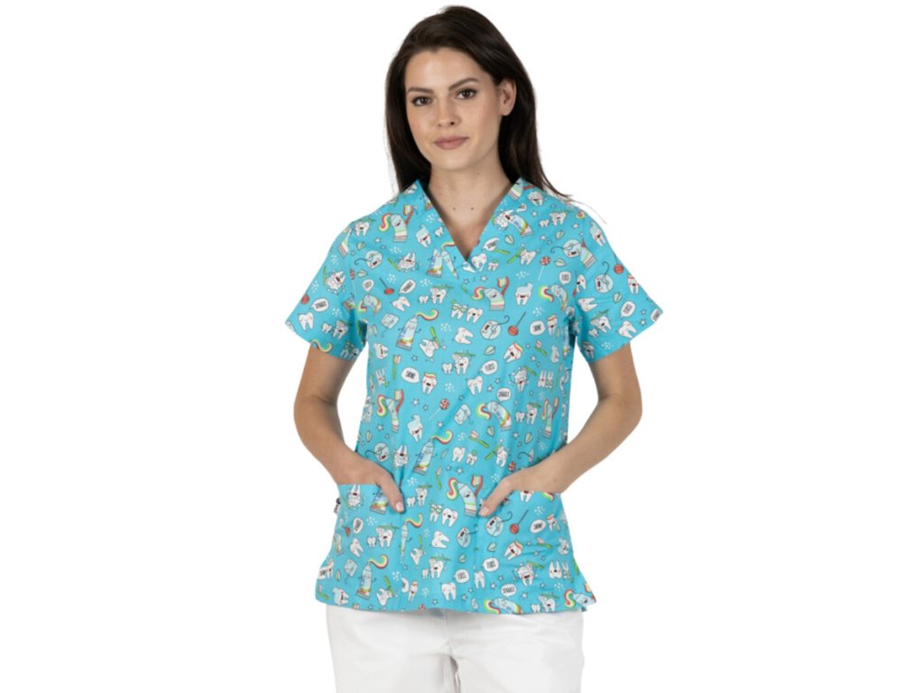 Zdravotnícka blúza STOMATOLÓGIA s veselou potlačou je vhodná predetské oddelenia, detské kliniky, detské ambulancie, škôlky, pôrodnice, pediatrie, zubné ambulancie, zdravotné sestry, dentálne hygieničky ale aj pre študentov medicíny a ostatných zdravotníckych pracovníkov pracujúcich s deťmi. Oblečenie od Medical Uniforms môžete ideálne kombinovať aj so zdravotníckymi doplnkami, ako je zdravotnícka obuv alebo fonendoskopy.