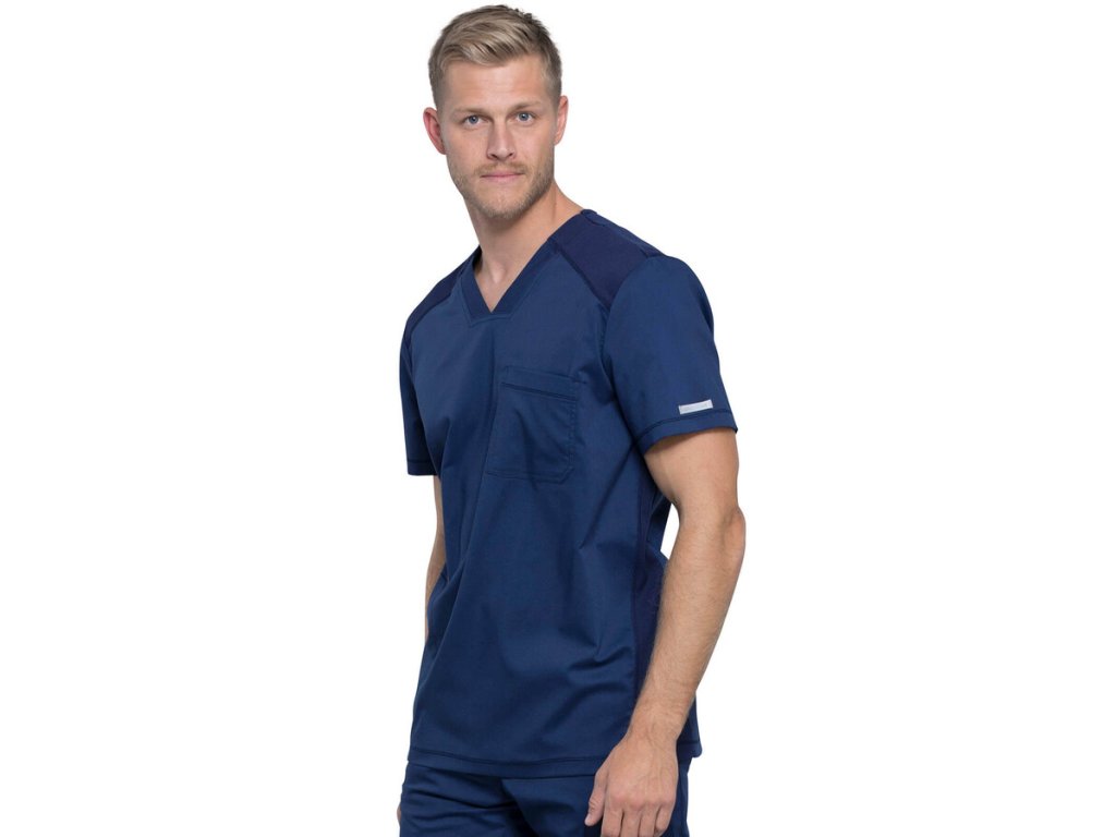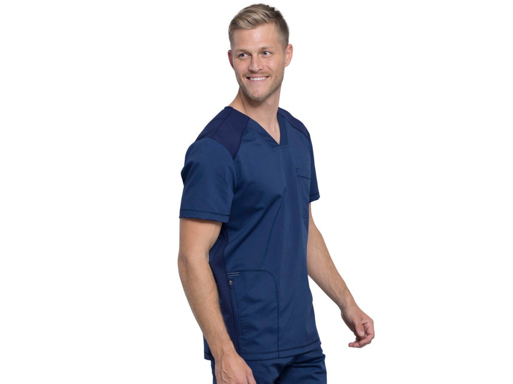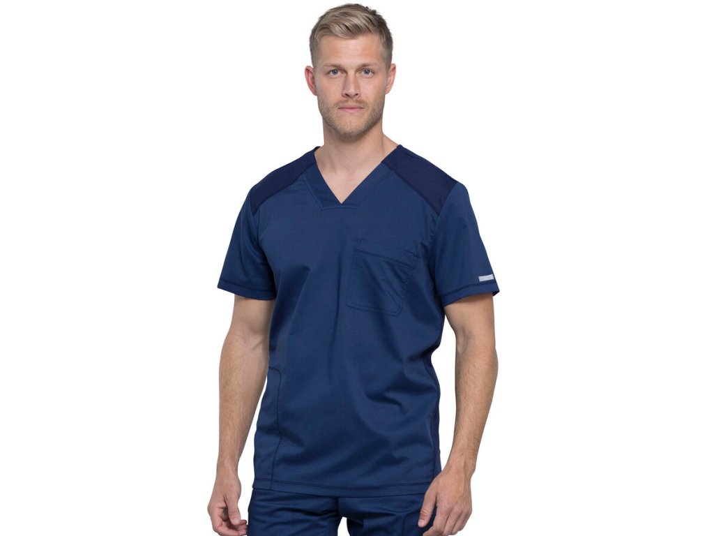 Lekárska pánska blúza Cherokee Revolution ACTIVE STYLING poteší všetkých zdravotníkov, ktorí vyžadujú pohodlie, štýl a praktickosť. Budete si pochvaľovať moderný strih, elastické sieťované vsadky na bokoch, sedielka na ramenách, ktoré vám dodajú voľnosť a maximálny komfortný pocit. Zamilujete si veľmi príjemný materiál, ktorý nevyžaduje extra starostlivosť a oceníte praktické vrecká, kontrastné pútko a rázporky.